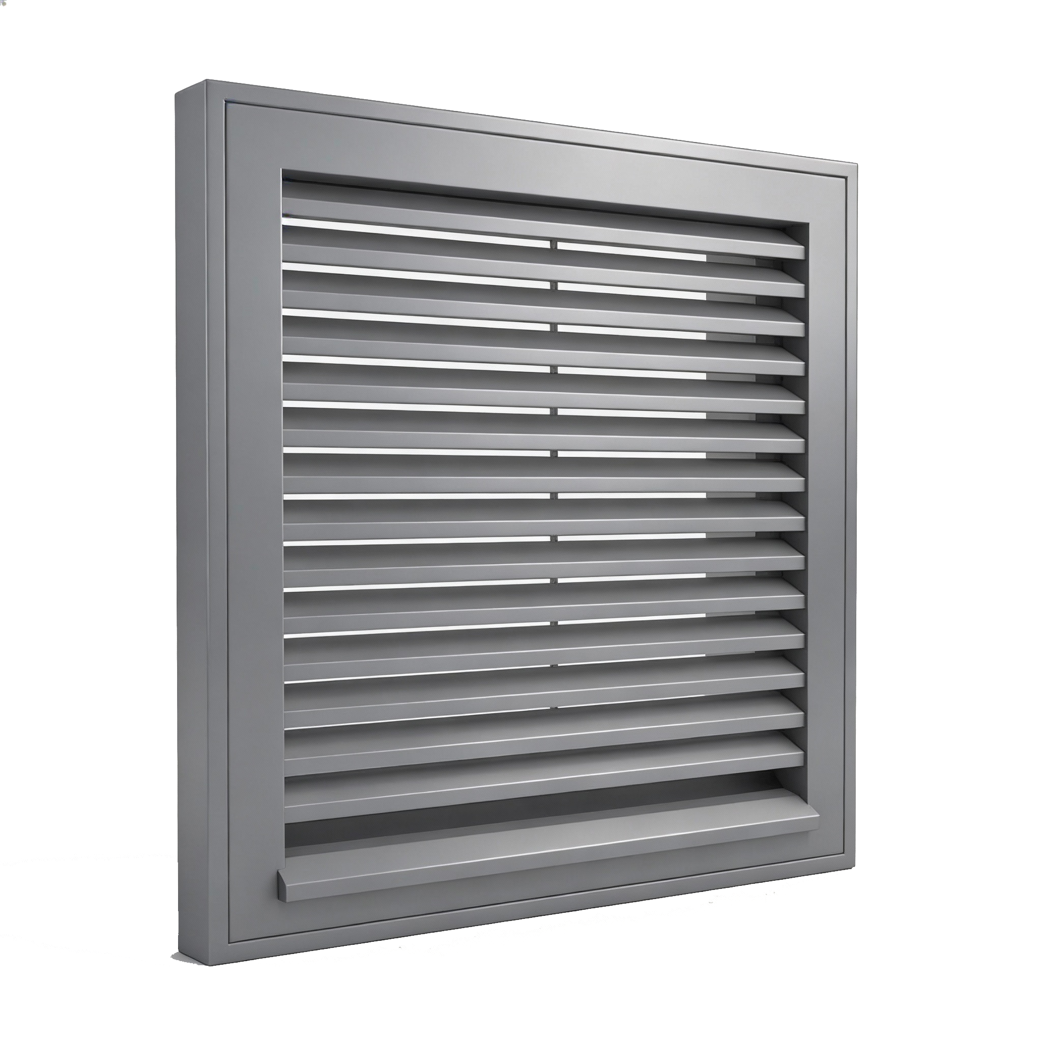 Grille de ventilation aluminium à lames ventelles, idéale pour assurer une ventilation intensive et constante dans locaux techniques, caves ou zones à fort passage d’air.